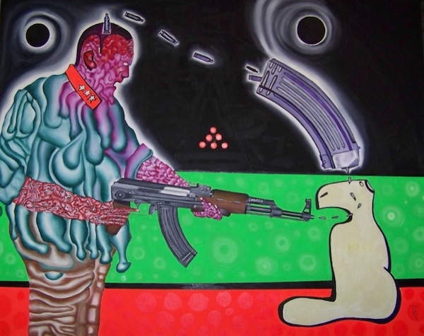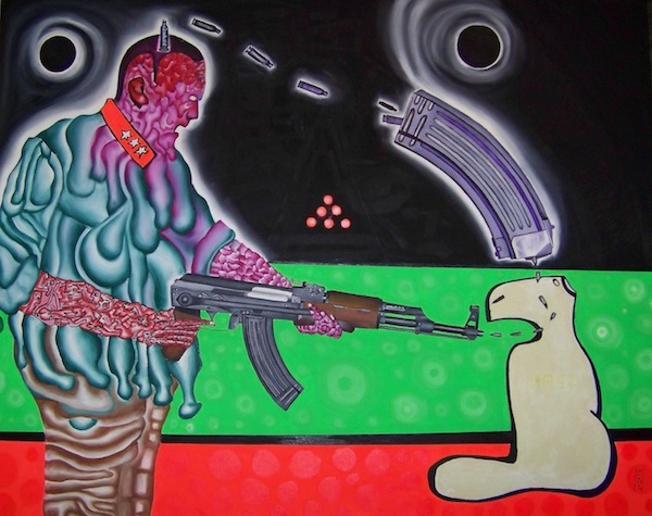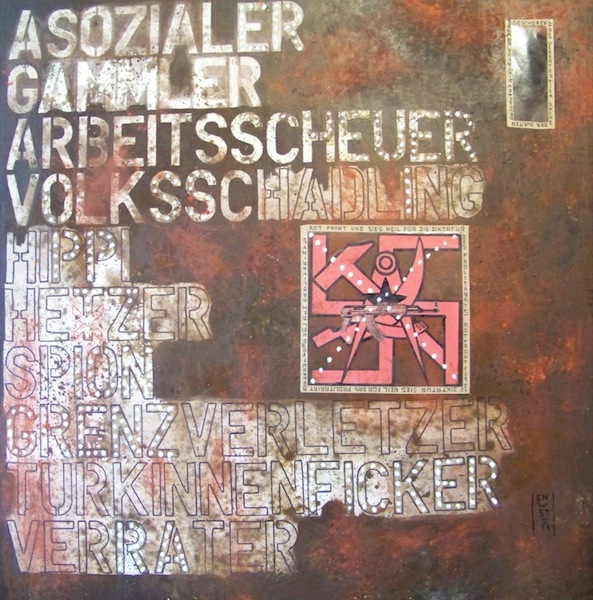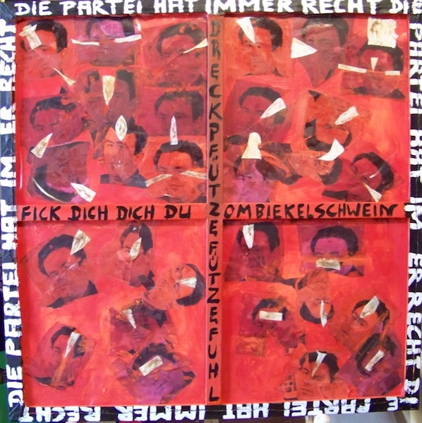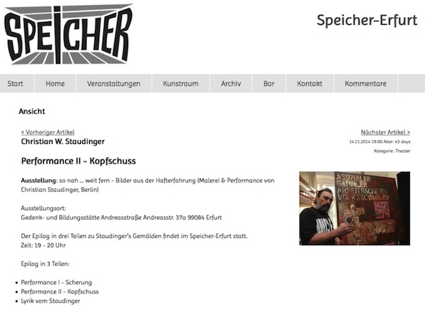 The missing paintings of the cycle were shown one month later in Speicher - a pub in Erfurt -, accompanied by three performances of the artist on 11/09/14, 11/14/14 and 11/16/14. Both exhibitions found their end on 01/14/2015 in a closing performance "From prison to pub".